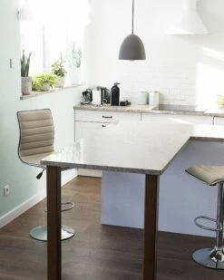 Barhocker Polsterbezug Beige Höhenverstellbar 2er Set MARION