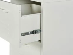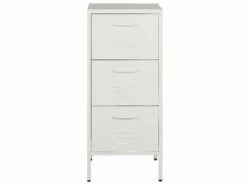 Dank Ihrer schmalen Form passt diese Kommode in nahezu jeden Platz, so kann sie den Stauraum auch auf begrenzter Wohnfläche maximieren. Dieses praktische Stauraumwunder sorgt für Ordnung, so ist alles immer schnell auffindbar und griffbereit. Kombinieren Sie den Schank mit weiteren Modellen – auch mit anderen Farbvarianten, um eine außergewöhnlich moderne Wohnwand zu erhalten. Da das weiße Möbelstück aus kaltgewalztem Metall besteht, ist es nicht nur robust und stabil, sondern auch besonders langlebig sowie pflegeleicht. Die schmalen Öffnungen an den Fronten sorgen für eine entsprechende Luftzirkulation, so eignet sich das Modell sowohl als Büro-, Akten- wie auch Kleiderschrank.