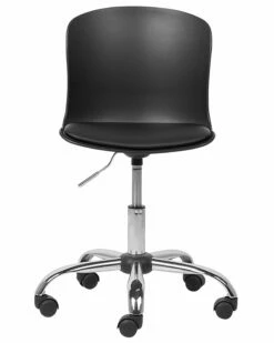 Der praktische Stuhl im trendigen Retro-Design bietet hohen Sitzkomfort und passt in alle Wohn- und Arbeitsräume. Die Sitzfläche besteht aus strapazierfähigem und pflegeleichtem Polypropylen, die zusätzlich angenehm mit hochwertigem, schwarzem Kunstleder gepolstert ist. Benutzen Sie den Hebel, um die Sitzhöhe je nach Wunsch zu verstellen und eine entsprechende Sitzposition am Schreibtisch zu erreichen. Dank den praktischen Rollen können Sie sich auch Sitzend frei im Raum bewegen.