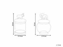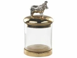 Mit diesem Dekogläser-Set können Sie nicht nur Ihren Lieblingsschmuck oder andere Kleinigkeiten aufbewahren, sondern auch eine stilvolle, glamouröse Atmosphäre in Ihr Zuhause bringen. Die Gläser wurden in Handarbeit aus Aluminium und Glas hergestellt und sind daher sehr langlebig und pflegeleicht. Auf beiden Deckeln sind Tiere abgebildet – ein Elefant und ein Nilpferd -, die in Ihrem Wohnraum mit Sicherheit zum Eyecatcher werden.