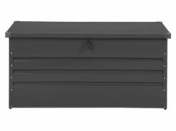 Wetterfeste, groĂźe Gartenkissenbox aus Metall in Graphitgrau