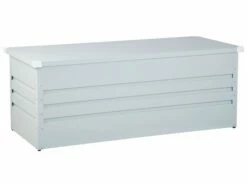 Wetterfeste, groĂźe Gartenkissenbox aus Metall in Hellgrau