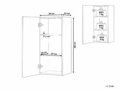 Dieser Hängeschrank ist eine Bereicherung für Ihr Bad. Mit einer Tür und zwei Einlegeböden verfügt der Badschrank über ausreichend Stauraum, um kleinere Badutensilien zu verstauen. Das exklusive Design erlaubt es Ihnen nicht nur, sich selbst etwas Gutes zu gönnen, sondern auch Ihrem Badezimmer Ihre persönliche Note zu verleihen. Setzen Sie Ihre Badträume in die Realität um und lassen Sie sich vom Design und der hochwertigen Qualität überzeugen!