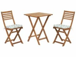 Ein wunderschönes Gartentischset aus edlem Akazienholz für Ihre Terrasse, eine romantische kleine Ecke in Ihrem Garten oder auf einen Balkon! Sowohl die Stühle als auch der Tisch sind klappbar und können platzsparend weggestellt werden. Pflegeleichtes Material und eine natürliche und zeitlose Ausstrahlung überzeugen bei diesem praktischen kleinen Gartentischset.