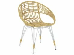 Dank dieses Boho-inspirierten Models schaffen Sie sich einen gemütlichen Entspannungsort auf Ihrem Balkon. Gefertigt sind die Möbelstücke aus Rattanimitat, das neben seinem schicken Aussehen auch besonders pflegeleicht ist. Sie bestehen aus robusten, pulverbeschichteten Metallbeinen mit Beinschutzkappen, die Ihren Boden vor Kratzern bewahren. Die breiten Sitzflächen der Stühle sind mit wasserfesten, beigen Kissen ausgestattet, so dass Sie es sich bei einer Tasse Kaffee in Gesellschaft Ihres Liebsten bequem machen können.