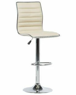 Unsere Kunstlederstühle werden Sie mit elegant geschwungenen Formen und zeitlosem Design in Kombination mit glänzendem Chrom und beigefarbenem, gestepptem Kunstleder begeistern. Diese Barhocker aus hochwertigem, pflegeleichtem Material haben eine sehr bequeme Sitzfläche. Diese bequemen Hocker sind um 360° frei drehbar, ihre stabilen Chromständer sind beliebig höhenverstellbar mit einer Gasdruckfeder und ihre breiten Fußstützen bieten zusätzlichen Komfort.
