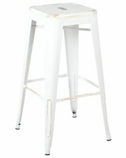 Diese praktischen Hocker haben eine ideale Sitzhöhe und sind stapelbar. Modernes Design in mattem Weiß-Gold, kombiniert mit funktioneller Formgebung aus pulverbeschichtetem, pflegeleichtem Metall. Kunststoffnoppen schonen Ihren Fußboden und bieten einen rutschfesten Stand, Querstreben auf allen vier Seiten dienen als komfortable Fußstützen.
