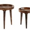 Eine praktische Bereicherung für jede Wohnung. Dank dieser zwei, runden Beistelltische haben Sie mehr Platz für Ihre Dekoartikel, Blumen oder andere Kleinigkeiten. Ob als kleiner Couchtisch im Wohnzimmer oder Ablage im Eingangsbereich, einzeln oder zusammen – dieses Set erfüllt überall seine Funktion. Zudem bezaubert es durch seinen modernen Look und die Kombination aus schwarzem Metall mit Holzoptik.