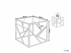 Ein schönes Accessoire, das sich perfekt als Beistell-, Couch- der Kaffeetisch macht. Seine quadratische Form sowie die zahlreichen Streben des Gestells verleihen dem Möbelstück einen industriellen Charme. Seine pulverbeschichtete Sicht in silbernem Farbton kann mit unterschiedlichen Möbeln und Stilen kombiniert werden.