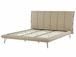 Elegantes, beiges Bett aus feinstem Kunstleder mit dekorativem Kopfteil