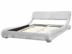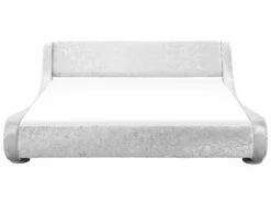 Gönnen Sie sich ausgezeichneten Schlafkomfort in diesem herrlich bequemen, breiten Doppelbett! Dieses Designerbett liegt absolut im Trend und begeistert durch seine ausgefallene, elegante, geschwungene Formgebung und das exklusive Design. Das komfortabel gepolsterte, hohe Kopfteil unterstreicht die luxuriöse Ausstrahlung. Der pflegeleichte, strapazierfähige Bezug ist aus hochwertigem, silbernem Samtstoff gefertigt, die Rückseite des Kopfteils ist aus Vliesstoff.