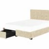 Schickes Design und noch besserer Schlafkomfort. Dieses Polsterbett verleiht jedem Interieur eine luxuriöse Note. Die robuste Konstruktion besteht aus zwei stoffbezogenen Boxen mit Sprungfedern und bietet somit eine feste Basis für eine bequeme Matratze. Das Doppelbett passt perfekt zu einem glamourösen Einrichtungsstil oder kann auch der Mittelpunkt eines modernen, minimalistischen Schlafbereichs sein.