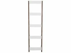 Dieses praktische Leiterregal in einem trendy Design bietet für jeden Raum eine funktionelle Lösung. Fünf geräumige Ablagen mit praktischen Rück- und Seitenrändern bieten jede Menge Stellfläche für Bücher, Fotos und vieles mehr. Die Größen der fünf Ablagen sind der schrägen Aufstellung zur Wand perfekt angepasst. Das Regal ist auch sehr pflegeleicht. Das trendy Leiterregal punktet mit Übersichtlichkeit und einen offenen Charakter.