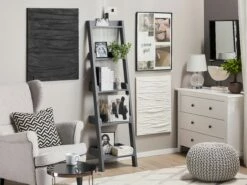 Dieses praktische Leiterregal in einem trendy Design bietet für jeden Raum eine funktionelle Lösung. Fünf geräumige Ablagen mit praktischen Rück- und Seitenrändern bieten jede Menge Stellfläche für Bücher, Fotos und vieles mehr. Die Größen der fünf Ablagen sind der schrägen Aufstellung zur Wand perfekt angepasst. Das Regal ist auch sehr pflegeleicht. Das trendy Leiterregal punktet mit Übersichtlichkeit und einen offenen Charakter.