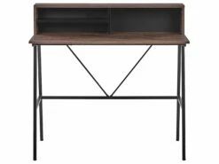 Ob im Schlaf- oder Wohnzimmer – mit diesem Büro-Set können Sie in jedem Raum eine Arbeitsecke einrichten. Die Tischplatte aus robuster Spanplatte in schöner, dunkler Holzoptik wird durch ein pulverbeschichtetes, stabiles Metallgestell ergänzt. Das mitgelieferte Bücherregal bietet mit seinen offenen Fächern viel Platz für dekorative und praktische Dinge. Da es sich bei dem Set um einzelne Möbelstücke handelt können Sie diese auf vielfältige Weise in Ihrem Wohnraum plazieren oder sie auch in verschiedenen Räumen aufstellen.