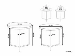 Verleihen Sie Ihrem Wohnzimmer einen modernen Charakter und schaffen Sie eine urbane Atmosphäre mit diesem industriell inspirierten 2er Set Couchtisch. Die runde Tischplatte in hellem Holzfarbton ist der perfekte Ort, um Kerzen, Pflanzen und Fotos zu präsentieren oder Ihren Gästen heiße Getränke zu servieren. Das multifunktionelle Set besteht aus drei Beistelltischen in verschiedenen Größen (klein und mittelgroß) . Die Möbelstücke können als Nachttische oder ein Akzent in Ihrem Eingangsbereich genutzt werden.