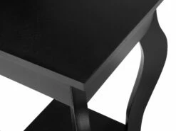 Die obere Tischplatte verfügt über dunkelbraunes Okoume Holzfurnier, die untere Ablagefläche sowie die Beine sind aus schwarz lackiertem MDF gefertigt und bringen einen Hauch von Eleganz in jeden Raum. Dieser Beistelltisch ist besonders für kleinere Ecken geeignet und zieht mit seinen klaren Linien und geschwungenen Beinen alle Blicke auf sich. Das traditionelle Design ist eine wunderschöne Ergänzung für Wohnzimmer, Schlafzimmer oder den Eingangsbereich und fügt sich in fast jeden Dekorstil ein. Beide Ablageflächen dienen als praktische Abstellmöglichkeit für essentielle Utensilien wie Zeitungen, Tischlampen, Schlüssel oder Dekorationsobjekte.