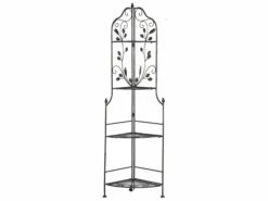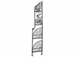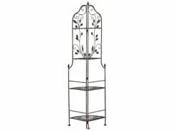 Bei diesem schwarzen Gartenregal aus pulverbeschichtetem Eisen kommen alle Liebhaber des Landhausstils auf Ihre Kosten. Die dekorativen Verzierungen verleihen dem Pflanzenregal eine zarte und luftige Ausstrahlung. Auf den vier Ablagerungsflächen können sowohl Pflanzen als auch andere dekorative Utensilien platziert werden.