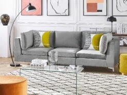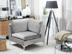 Ob als selbstständiges Möbelstück oder als ein Modulelement eines Ecksofas oder einer größeren Wohnlandschaft – dieses Eckteil ist einfach vielseitig einsetzbar. Es besitzt einen hochwertigen Rundumbezug aus Samtstoff, sowie abnehmbare Kissenbezüge, weshalb es auch für Familien mit Kleinkindern oder Tierliebhaber eine gute Wahl sein kann. Die trendige Farbgebung in Grau korrespondiert ausgezeichnet mit den verchromten Metallbeinen in Silberoptik, weshalb es äußerst modern, edel und einladend wirkt.
