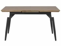 Dieser Speisetisch besitzt genau die Komponenten, die beim Industrial-Style keinesfalls fehlen dürfen: einen robusten Holz-Look und kühles Metall. Das robuste Metallgestell bezaubert mit seiner sehr soliden Qualität und dynamischen Form. Zudem sorgt die ungewöhnliche Bauweise des Modells für genügend Beinfreiheit, damit auch jeder bequem am Tisch sitzen kann. Die MDF-Platte in atemberaubender Holzoptik ist einfach zu pflegen, so wird auch das Aufräumen nach dem Familientreffen leicht gemacht.