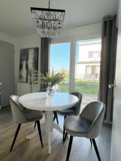 Stilvoller, runder Esszimmertisch aus Holz im Landhausstil