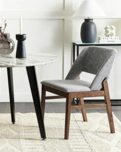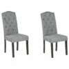 Wer seinem Esszimmer eine traditionelle Note verleihen möchte, wird mit diesem Sitzmöbel Set gut beraten sein. Die Stühle verfügen über gepolsterte, hellgraue Sitzflächen mit Zackenmustern und hohe, geschwungene Rückenlehnen, die nicht nur einen hohen Sitzkomfort garantieren, sondern auch die Aufmerksamkeit Ihrer Gäste auf sich ziehen. Beide Polsterstühle verfügen über robuste Beine aus Gummibaumholz.
