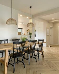 Diese ästhetischen Sitzgelegenheiten werden Sie bestimmt vom Stuhl hauen! Sie sind eine moderne Interpretation des bewährten und hoch angesehenen Landhausstils und können sich in jedem Ess- oder Wohnzimmer sehen lassen. Die langen Streben an der Rückenlehne garantieren eine optimale Sitzposition und die vier schmalen Stuhlbeine mit Querverbindungen gewährleisten ausreichend Stabilität. Diese Möbelstücke sind eine exzellente Wahl für alle, die ihrem Wohnraum eine eklektische und zeitlose Note verleihen möchten.