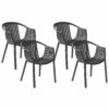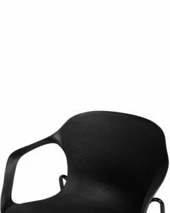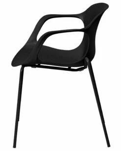 Die Essstühle verfügen über angenehm geschwungene Sitzschalen aus robustem, schwarzem Kunststoff und gebogene, offene Armlehnen. Schlanke Bbeine aus pulverbeschichtetem Metall sorgen für einen stabilen Stand. Die praktischen und bequemen Modelle punkten mit strapazierfähigem und pflegeleichtem Material und sind für jeden Wohnbereich geeignet. Das 2er Set kommt in einer industriellen Essecke oder einer trendy Küche genauso gut zur Geltung wie in modernen Arbeitsbereichen oder einem Besprechungsraum.