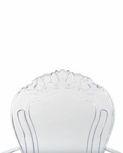 Die wunderschön geschwungene Form, die schlanken Beine und die charakteristische Verzierung an Rückenlehnen und unterhalb der Sitzflächen erinnern an klassische Stühle aus vergangenen Zeiten. Doch statt aus Holz mit einem Bezug aus schwerem Samt oder Brokat wurden diese trendy Stühle aus hochwertigem Polycarbonat hergestellt. Das Material ist UV-beständig, besonders robust und pflegeleicht. Das transparente Material unterstreicht die moderne Note und verleiht den stapelbaren Stühlen Leichtigkeit. Mit ihrem ausgefallenen Design setzen sie sowohl in modernen wie auch in klassischen Einrichtungsstilen tolle, kontrastierende Akzente.