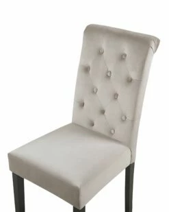 Zwei formschöne Polsterstühle aus Samtstoff mit eleganter Knopfsteppung und Ring