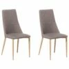 Die Sitze und Rückenlehnen der Stühle sind angenehm gepolstert und mit einem Bezug aus strapazierfähigem Polyester in Beige ausgestattet. Die schlanken Beine der Stühle sind aus stabilem Metall gefertigt und verfügen über eine braune Eichenholz Optik, wodurch die Stühle eine warme und behagliche Ausstrahlung bekommen. Dank hochwertiger Qualität und solider Verarbeitung sind diese bequemen Stühle eine ideale Wahl für Ihren gemütlichen Essbereich oder den Küchentisch.