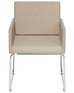 Die angenehm gepolsterten Sitzschalen der Stühle verfügen über einen hochwertigen und strapazierfähigen Bezug aus Polyester in der Farbe Beige. Sie ruhen auf schlanken Kufen aus verchromtem Metall, die einen rutschfesten Stand bieten. Dank der perfekt geformten Armlehnen sind die Stühle so bequem wie Sessel. Sie bieten vielseitige Nutzungsmöglichkeiten für alle Wohn- und Arbeitsbereiche und machen sich in Ihrer behaglichen Essecke genau so gut wie in einem Konferenzraum.