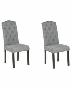 Zwei glamouröse Polsterstühle in Grau mit Diamant-Nähten