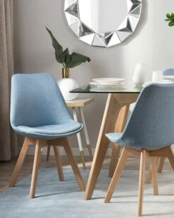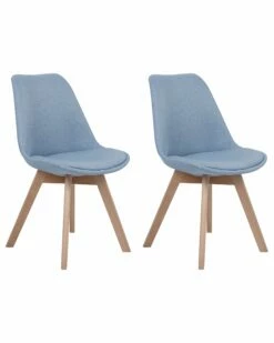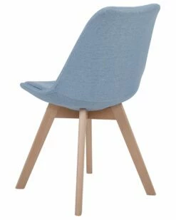 Die praktischen Stühle im angesagten Retro Design bieten mit ihrem hohen Sitzkomfort und ihrer schönen Farbkombination aus hellem Buchenholz mit stilvollem Hellblau vielseitige Nutzungsmöglichkeiten für alle Wohn- und Arbeitsbereiche. Die formschön geschwungenen Sitzschalen sind aus strapazierfähigem Kunststoff gefertigt. Die angenehm gepolsterten Sitzflächen und Rückenlehnen aus hochwertigem Polyester laden zum entspannten Sitzen am Esstisch ein. Robuste, leicht schräg stehende Stuhlbeine sorgen für stabilen Stand.