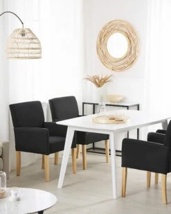 Stuhl oder Sessel – das ist die Frage! Mit dem Armlehnenstuhl haben Sie einen besonders vielseitigen Begleiter gefunden! Dank der weichen Polsterung sitzen Sie an langen Fernsehabenden ganz entspannt, er lässt sich schnell und flexibel heranholen fĂĽr die gemĂĽtlichen und fröhlichen Abende mit Freunden, er macht mit seinem zeitlosen Design und moderner Ausstrahlung als Club- oder Loungesessel eine gute Figur, und dank der angenehmen Sitzhöhe ist er perfekt fĂĽr den Einsatz am Esszimmertisch geeignet. Der trendy Polsterstuhl hat einen strapazierfähigen, hochwertigen Bezug aus Polyester in Schwarz.