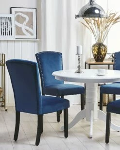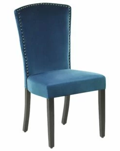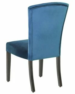 Ein Stuhl-Set, dessen Retro-Charme Sie sofort verzaubert! Die bequemen Sitzflächen entzücken mit ihren weichen Samtstoff-Bezügen und kräftiger Farbwahl. Die beiden formschönen Rückenlehnen erhalten durch die dezente Ziernieten-Umrandung einen besonders glamourösen, noblen Look. Das Set passt perfekt zu jedem Tisch und jeder der Stühle wird sich auch bei einer Kommode oder einem Schminktisch wundervoll bewähren. Die robusten Kiefernholz-Beine sorgen für die nötige Stabilität und die zusätzlichen Schutzkappen tragen zum Schutz Ihres Fußbodens bei.