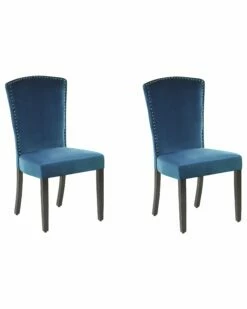 Ein Stuhl-Set, dessen Retro-Charme Sie sofort verzaubert! Die bequemen Sitzflächen entzücken mit ihren weichen Samtstoff-Bezügen und kräftiger Farbwahl. Die beiden formschönen Rückenlehnen erhalten durch die dezente Ziernieten-Umrandung einen besonders glamourösen, noblen Look. Das Set passt perfekt zu jedem Tisch und jeder der Stühle wird sich auch bei einer Kommode oder einem Schminktisch wundervoll bewähren. Die robusten Kiefernholz-Beine sorgen für die nötige Stabilität und die zusätzlichen Schutzkappen tragen zum Schutz Ihres Fußbodens bei.