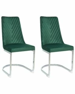 Dieses 2er Set an Esszimmerstühlen verkörpert all das, was das Herz begehrt – eine bequeme und wohlgeformte Sitzfläche, komfortable Rückenlehne und eine wunderbare Verzierung. Das chromfarbene Gestell verleiht dem Stuhl einen schimmernden und glänzenden Effekt, der durch die Sitzfläche aus Samtstoff mit einem dekorativen Fischgrätenmuster edel hervorgehoben wird. Dank der leicht schwingenden Form ohne Hinterbeine kann die Sitzmöglichkeit sowohl in kommerziellen als auch privaten Räumen perfekt untergebracht werden.