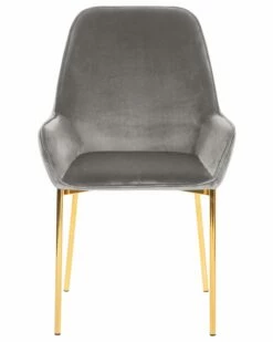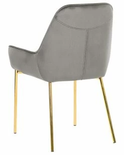 Ein edles Möbelstück für Ihren Wohn-, Schlaf- und Essbereich! Die hochwertige Polsterung mit samtig weichen Finish sowie die elegante, graue Farbe machen diesen Stuhl zu etwas ganz Besonderem. Die vier, goldenen und schmalen Füße geben dem Stuhl genügend Halt und runden das Design stilvoll ab.
