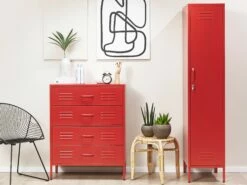 Praktischer, abschließbarer Stahlschrank mit 5 Fächern in Rot