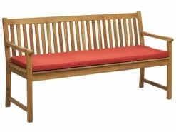 Schlichte Gartenbank aus zertifiziertem FSC-Akazienholz mit passender Auflage