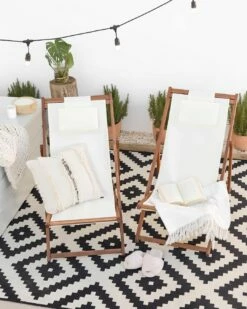Dieser stilvolle Liegestuhl wird zu einem fantastischen Begleiter für sommerliches Urlaubsfeeling im eigenen Garten. Als klassischer Strandstuhl ist er zusammenklappbar, leicht zu transportieren und lässt sich schnell an Ihrem Lieblingsplatz in der Sonne aufstellen. Das stabile Gestell ist aus geöltem Akazienholz gefertigt und ist 3-fach verstellbar für zusätzlichen Komfort. Auf dem hochwertigen Bezug aus beigem Polyester mit bequemem Kissen als Kopfstütze können Sie das schöne Wetter ganz entspannt genießen. Purer Luxus in schlichtem Design!