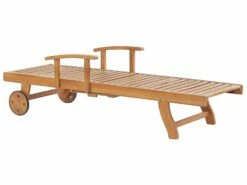 Moderne Sonnenliege aus Akazienholz mit Rädern und Auflage in Graphit