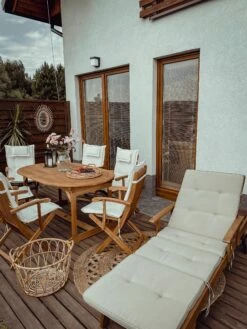 - Geöltes Holz sollte vor der Benutzung und nach der Saison vor der Einlagerung nachgeölt werden, besonders bei feuchtem Klima.
