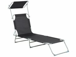 ZurĂĽcklehnen, entspannen und Sonne genieĂźen – auch die eigene Terrasse lässt sich ganz schnell in ein kleines Urlaubsparadies verwandeln! Die zusammenklappbare Liege hat ein stabiles Gestell aus silbernem, pulverbeschichtetem Stahl mit einer bequemen und robusten Bespannung aus Polyester mit einer feuchtigkeits- und schmutzabweisenden PVC-Beschichtung. Das Material ist extrem witterungsbeständig, strapazierfähig und äuĂźerst pflegeleicht. Die RĂĽckenlehne ist 5-fach verstellbar fĂĽr zusätzlichen Komfort. Das praktische, abnehmbare, ganz nach Wunsch verstellbare Sonnendach bietet Schutz vor Sonneneinstrahlung und spendet wohltuenden Schatten.