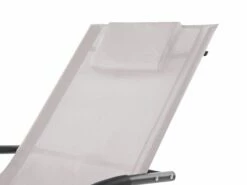 Das außergewöhnliche Design und die dynamische Ausstrahlung machen diesen Liegestuhl zu einem optischen Highlight. Er verfügt über eine strapazierfähige, outdoortaugliche Bespannung aus beigem Polyester, eine komfortable, breite Nackenstütze und eine rutschfeste, schwarze Schicht an den geschwungenen Armlehnen und den Kufen. Diese sind zu einheitlichen, ovalen Seitenteilen verbunden, welche durch schlanke Querstreben noch mehr Stabilität erhalten. Das Gestell aus schwarzem Stahl mit einer rost-resistenten Pulverbeschichtung ist witterungsbeständig, pflegeleicht, besonders stabil und leicht transportierbar.