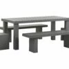 Geräumige Sitzgruppe mit Bänken und Hockern aus trendigem Faserzement