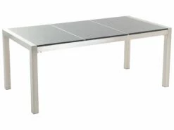 Dieses Garten-Tischset wird viele Jahre das absolute Highlight auf Ihrer Terrasse sein! Das exquisite Tischset aus hochwertigem Edelstahl und Granit ist ein ganz besonderes Modell in unserer Produktepallette. Der glänzende Rahmen aus gebürstetem Edelstahl ist robust, stabil und elegant. Die graue polierte Granitplatte ist extrem witterungsbeständig und harmoniert perfekt mit den Stühlen mit Sitzflächen aus UV- beständigem Polyrattan in Schwarz.