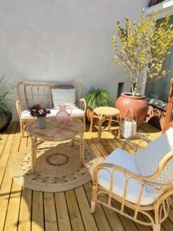 Handgefertigtes Rattanset in naturbelassener Farbgebung