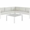 Dieses geräumige und dekorativ designte Rattanset lässt Ihren Gartenbereich stilvoll aufleben und garantiert ausreichend Sitzplatz bei Grillpartys und Kaffeekränzchen. Es besteht aus einem Kaffeetisch, zwei komfortablen Sesseln, einem Sofa und einem kompakten Beistelltisch. Die wundervoll geformten Arm- und Rückenlehnen der Sitzmöbel wirken äusserst einladend und komfortabel. Dank der abnehmbaren Kissenbezüge ist die Möbelgruppe pflegeleicht und eine ausgezeichnete Wahl für Familien mit Kleinkindern und Haustieren.